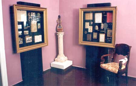 Єгипет заворожував Лесю Українку, підказував все нові і нові творчі плани, які так і не вдалось реалізувати, але разом з тим всі думки поетеси були звернені до Батьківщини. Про це свідчать і самі єгипетські твори, і знаменита крилата фраза поетеси: "…скрізь бачу образ рідної неволі". Про що б не писала вона, образ України був незримо присутній між рядками її творів. Поетеса марила Україною, на яку повертатись не могла. У вірші "Сон", створеному в Гелуані, вона пише: Тихо та любо… чи се Вкраїна? Проте у долі свої закони. Лесі Українці судилось навіть попрощатись з життям далеко від рідної землі: її не стало 1 серпня 1913 року в м. Сурамі. Але справдились пророчі думки поетеси: Як я умру, на світі запалає, Так і сталось, оскільки Леся Українка була наділена високим даром співця, що мав "талант до віршів не позичений, а власний". Ви, напевно, пам'ятаєте, героя Лесиної "Давньої казки, "нещасного поета", який переконливо показав дивовижну силу слова і своєї мандоліни. Перед вами ще один цікавий експонат - італійська мандоліна кінця ХІХ століття. Нехай вона служить символом тієї ліри, струн якої торкалась Леся Українка, щоб навіки увійти в історію нашої культури і письменства - Поетесою і жінкою-ломикаменем, яка прикладом свого життя вчить всіх нас не лякатись бар'єрів і труднощів, а неухильно долати їх, прагнучи до чистого блакитного неба. |